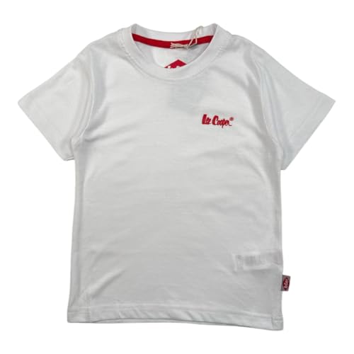 Lee Cooper, T-shirt, pojke, flicka, (4–14 år), polo, linne, skjorta, tryck, kläder, unisex, barn, sport, andas, modell GLC80701 TS S2-4A, vit, Vitt och blått, 4 �r