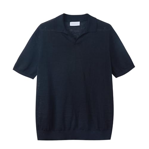 Diana Studio, Polo herr, 100% linne, enfärgad, tillverkad i Italien, Svart, L