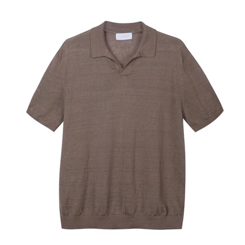 Diana Studio, Polo herr, 100% linne, enfärgad, tillverkad i Italien, tobak, S, Tobak, S
