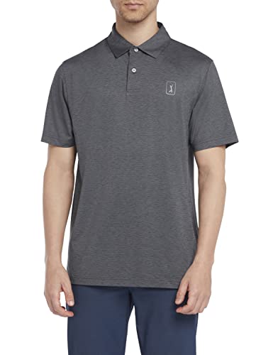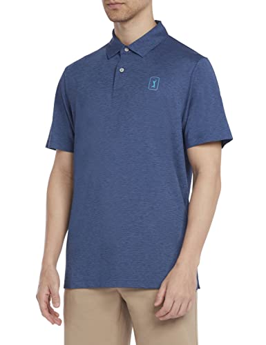 PGA Herr rymdfärgad texturerad polo, naturlig stretch, kortärmad, normal passform skjorta, Marinblått Xsp, S