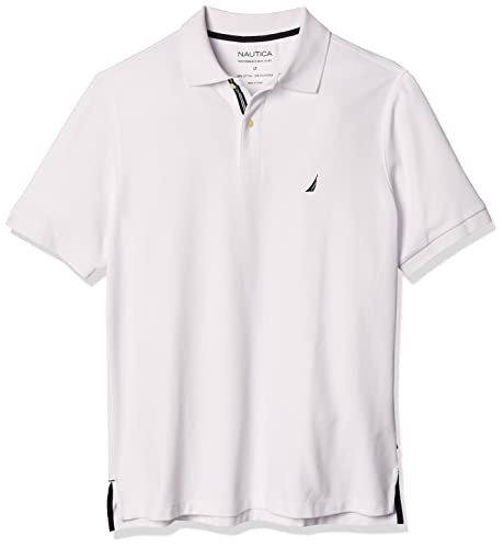 Nautica Herr klassisk passform kortärmad solid prestanda polo skjorta, Kritvit, L Lång