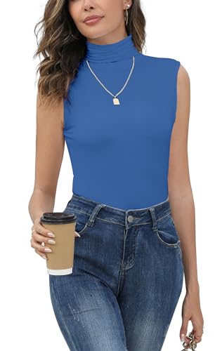 Tröja med ärmlös polokrage dam modern anpassad t-shirt hög krage bekväm undertröja baströja ull topp topp vintage chic vinter höst vår, Färg: blå, XXL