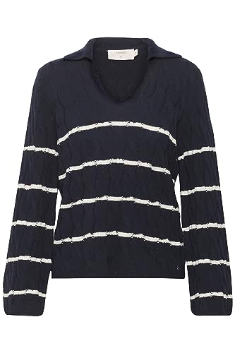 Cream Dam pullover långärmad formad passform kabel stickad polokrage dam, Total förmörkelse rand, XL