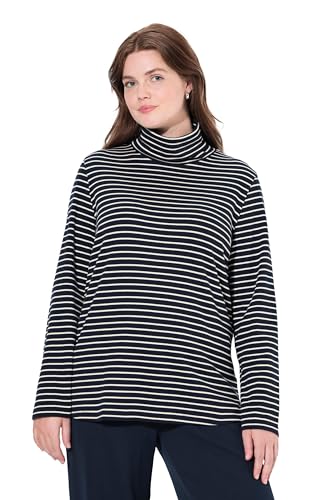 Ulla popken damer stora storlekar överdimensionerade plus size skjorta, ribbad, smal, polotröja, långärmad, ekologisk bomull, marinblå, 42-44