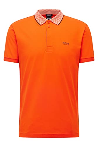 BOSS Paddy 3 polotröja av bomull med tryckt krage och logotyp, Bright Orange821, XXL