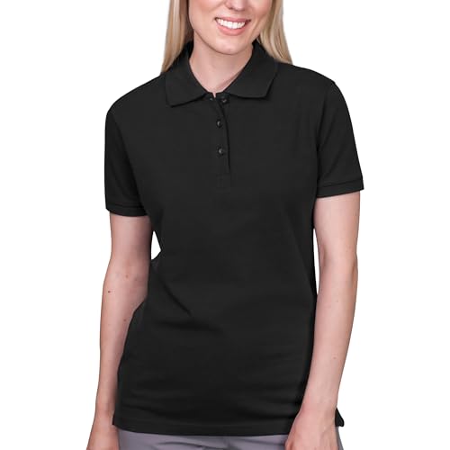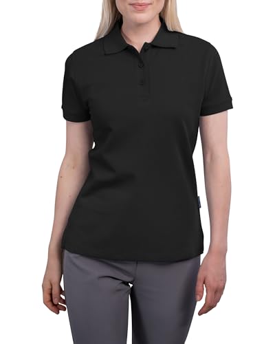 HRM dam tung stretch polo I premium polotröja dam av 95% bomull och 5% elastan I basic polotröja tvättbar upp till 40 °C I Högkvalitativa och hållbara damtoppar I arbetskläder, Svart (svart