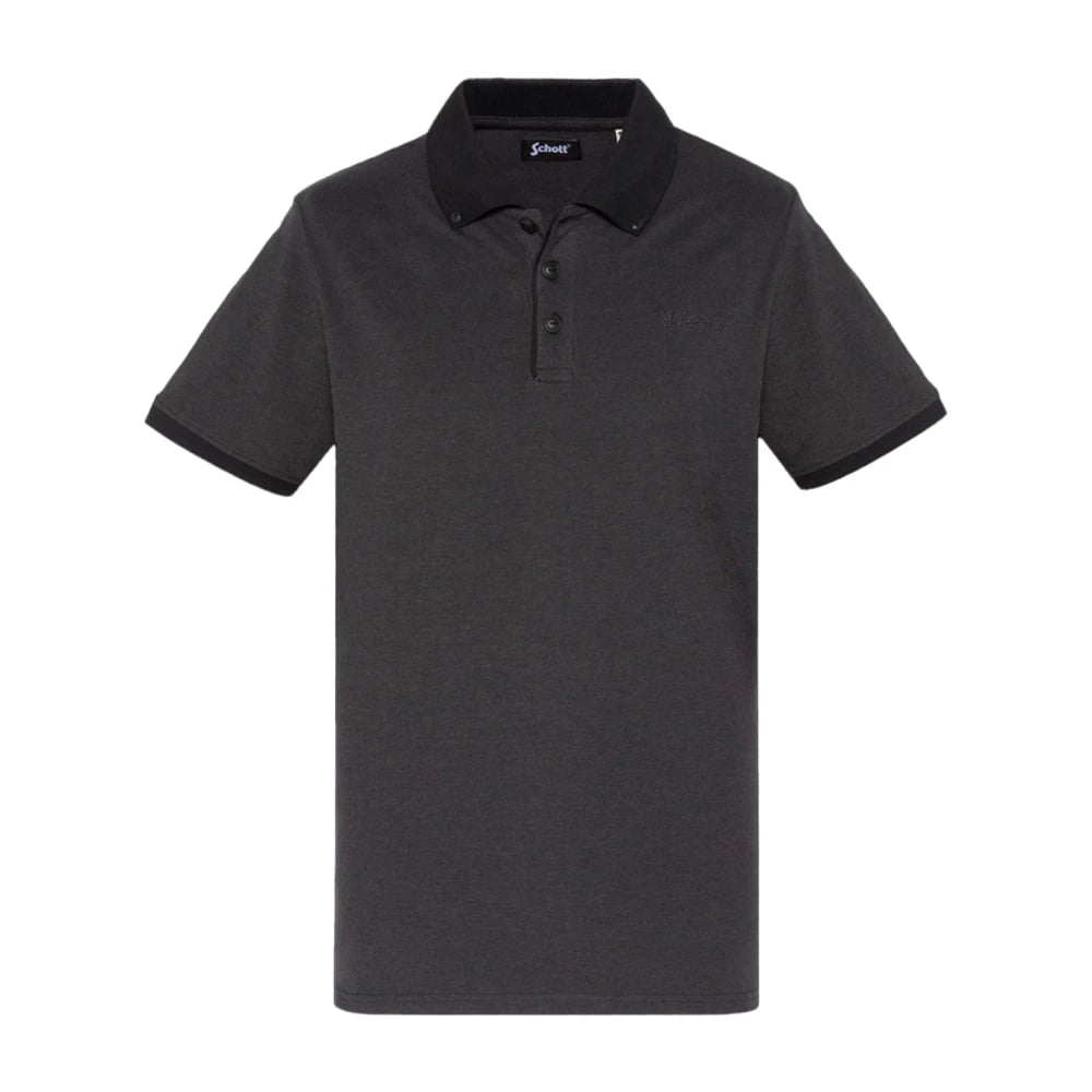 Schott Nyc, Toppar , Herr, S, Bomull, Svart kortärmad polotröja