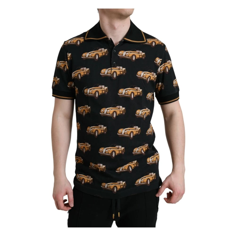 Dolce & Gabbana, Toppar , Herr, 2Xs, Bomull, Svart kortärmad polotröja med biltryck