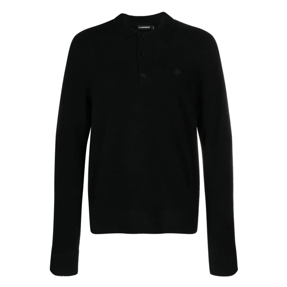 J.Lindeberg, Toppar , Herr, S, Nylon, Svart långärmad polotröja