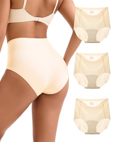 INNERSY Underbyxor dam, sömlösa hög midja, polyamid, sömlösa trosor, osynliga underkläder, 3-pack, 3 Basic beige, M