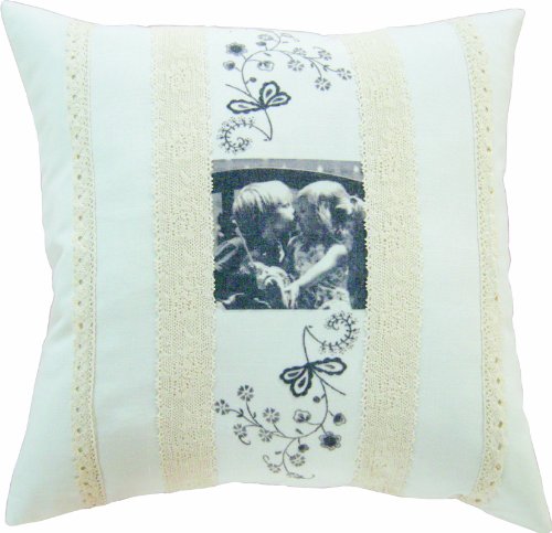 My Flair 24.16RA romantisk kudde, 40 x 40 x 14 cm med fyllning, 50% bomull 50% polyester, handtvätt, beige med svart/grått motiv