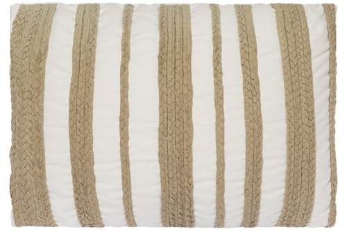 My Flair 35,09LH kudde i tidlös stil, 35 x 50 x 8 cm med fyllning, 50% bomull 50% polyester, handtvätt, vit med grönt flätmönster