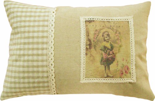 My Flair 24.26RA romantisk kudde, 30 x 45 x 14 cm med fyllning, 50% bomull 50% polyester, handtvätt, beige med svart/grått motiv