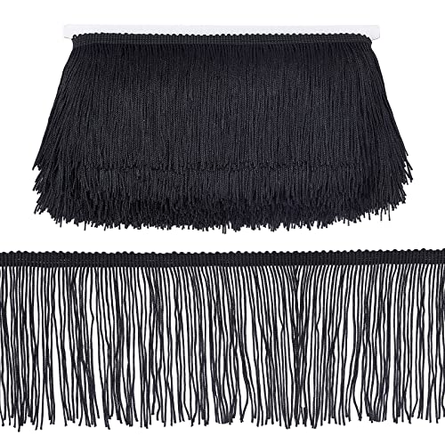 OLYCRAFT 10 m 4 tums frans trim spets tofs svart polyester fiber tofs för latinsk dans klänning gör-det-själv kläder utsmyckning lampskärm och kudde dekorationer (11 meter)
