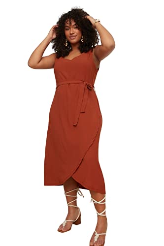 Trendyol Curve Polyester Mix Plus Size Klänning - Orange - Wrapover XL Orange, Kakel röd, XL