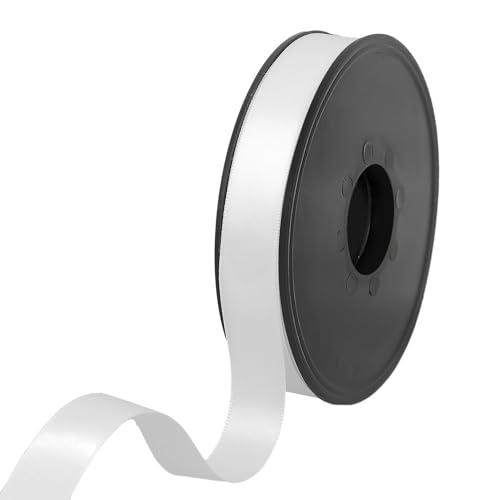 25 mm x 91 m dubbelsidigt satinband vitt polyesterband för presentinslagning bröllopsdekoration blomsterarrangemang hantverk