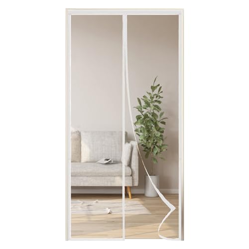 MAGICDOOR Magnetiskt myggnät för dörrar, 95 x 200 cm polyesterfiber myggnät dörrgardin, robust andningsbar fönsterskärm automatisk stängning för terrass sovrum säng-vit