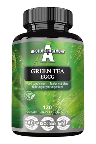 Grönt te-extrakt 500 mg, innehåller 50% EGCG och 98% polyfenoler, 120 vegankapslar, 4 månaders leverans, Camellia sinensis te-extrakt, naturlig fettförbränning, antioxidantstöd - av Apollo's Hegemony