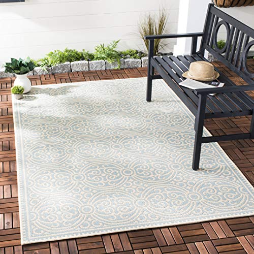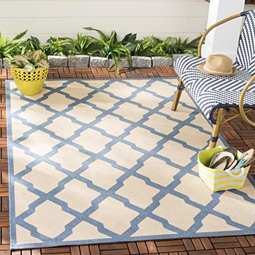 SAFAVIEH Multifunktionell inomhus/utomhusmatta, vävd polypropen matta, grädde/blå, 120 x 180 cm