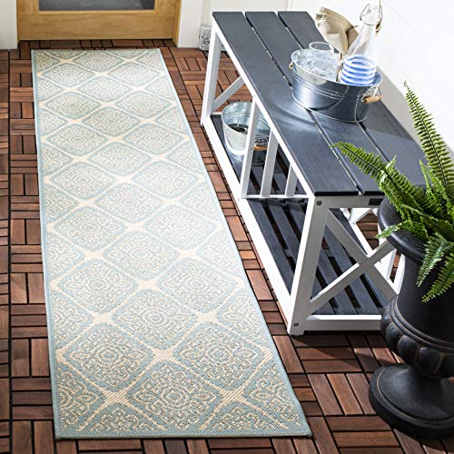 SAFAVIEH Multifunktionell inomhus/utomhusmatta, vävd polypropen matta, grädde/aqua, 90 x 150 cm