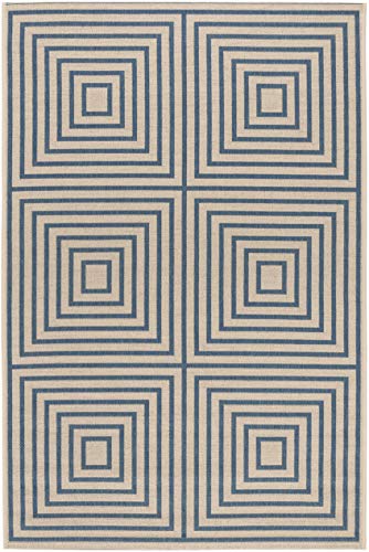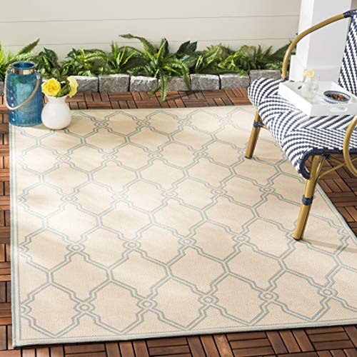 SAFAVIEH Multifunktionell inomhus/utomhusmatta, vävd polypropen matta, grädde/blå, 160 x 230 cm