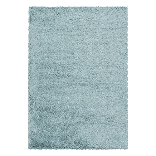 misento Shaggy matta med hög lugg för vardagsrum, lång lugg, testad för skadliga ämnen, 100% polypropen, aqua 200 x 290 cm