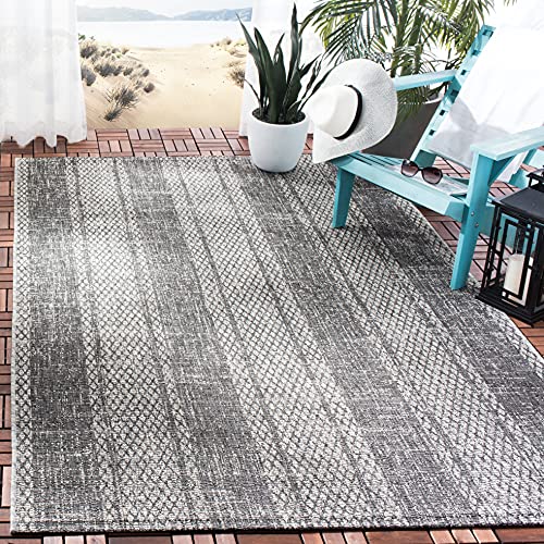 Safavieh Rafal multifunktionell inomhus/utomhusmatta, vävd polypropen matta, CY8736-36312-5-P 90 X 150 cm ljusgrå/svart