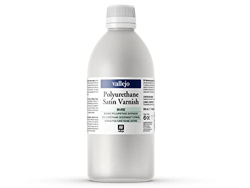 Vallejo – polyuretanlack | satinfinish 500 ml. 16,9 ml | Extra hårdhet och hållbarhet | Skapa en perfekt klar kappa | Repbeständig för utomhus- och inomhusytor