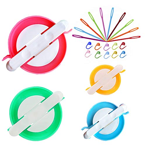 Pompom Maker Kit, Pom pom Stickning Loom Kit Fluff Ball Weaver Needle Craft DIY Stickning Virkning Hantverk Verktygssats, 4PS Pompom Maker + 10PS Stickningsmarkörer + 10PS Plastnålar (24)