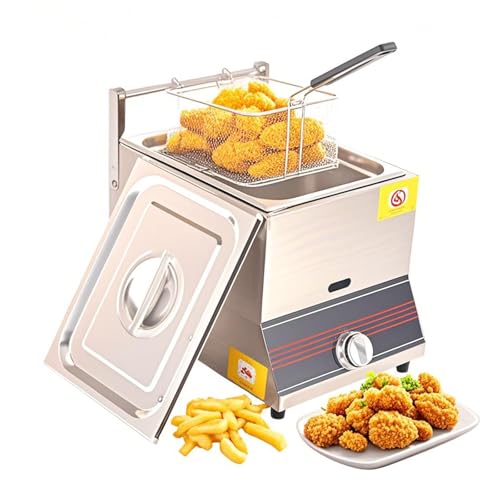 Kommersiell bänkskiva LPG gas fritös, enkel tank rostfritt stål fritös med lock och stekkorg och stativ, för pommes frites hem kök restaurang