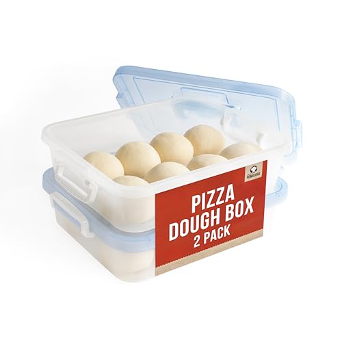 Chef Pomodoro Stor jäsningslåda för pizzadeg med 2 lådor och 2 lock, 44 x 34 cm, pizzadegbehållare med lock passar 6–8 degbollar, pizzadeglåda med bekvämt bärhandtag (blå)