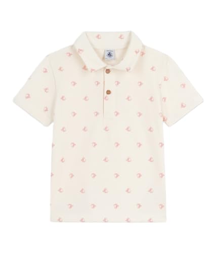 Petit Bateau Kortärmad bomullspolo för barn med tryck, Mjölk/Pompei, 5 �r