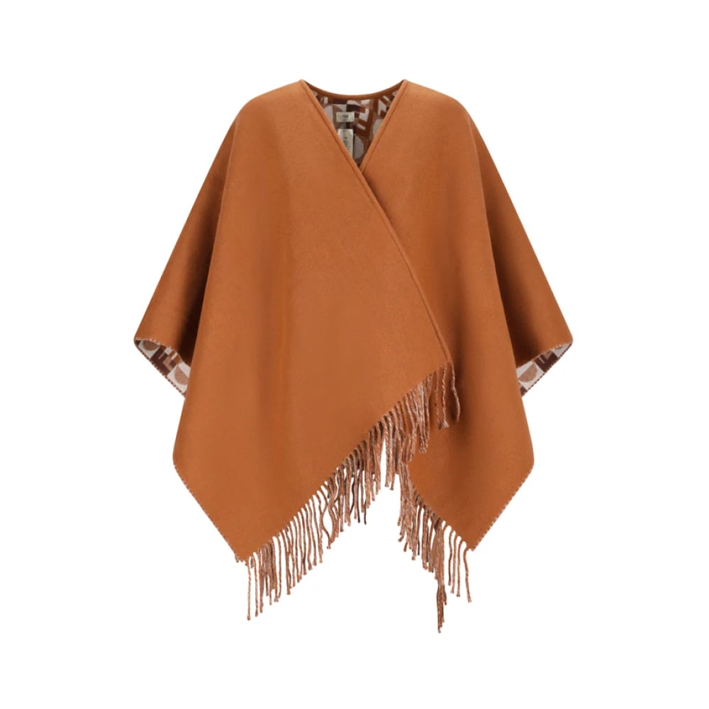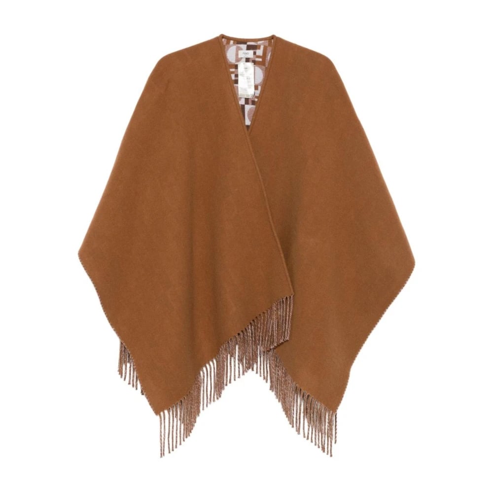 Fendi, Jackor , Dam, ONE Size, Wool Blend Poncho med Fransad Fåll