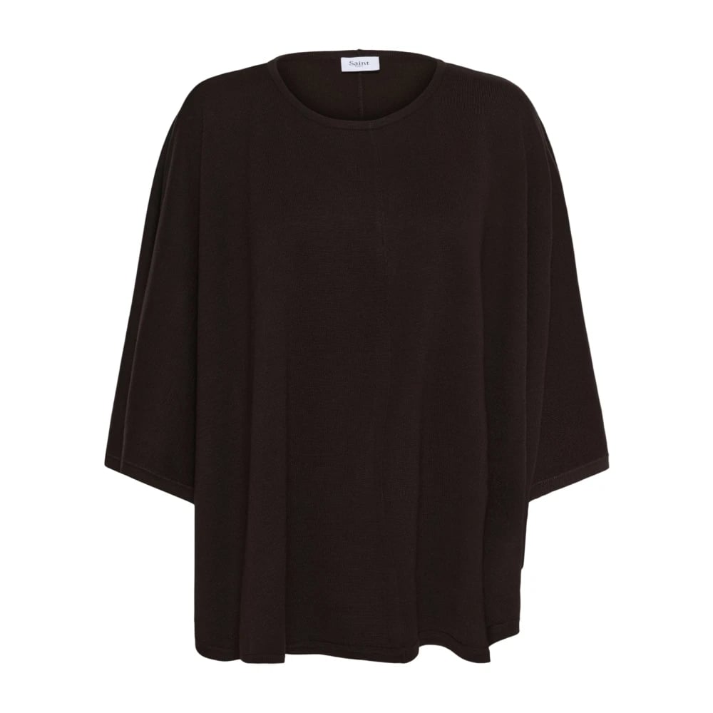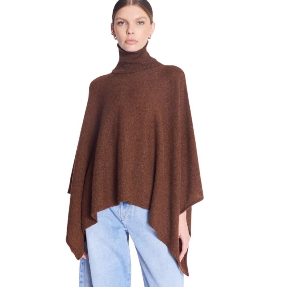 Americandreams, Jackor , Dam, ONE Size, Mörkbrun Ärmlös Polokrage Poncho