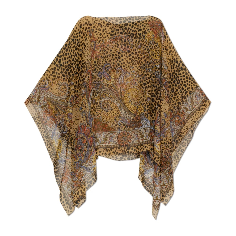 Etro, Jackor , Dam, ONE Size, Silk Poncho Top med Paisley- och Djurmotiv