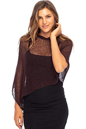 Back From Bali Womens Sheer Poncho Shrug Bolero, Lightweight Summer Shrug Pullover Sweater Brown