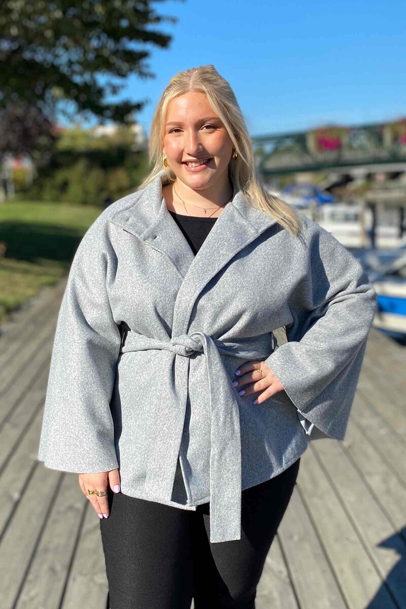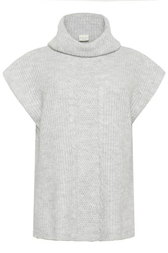 Kaffe Curve Plus storlek dam poncho rullhals lös passform ärmlös kabelstickad, Grå melange, M stor
