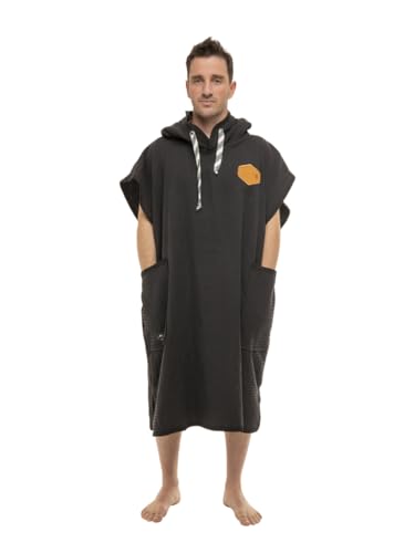 ALL-IN Light Line lättviktig poncho för dam, surfing, bad och strand-tyg 100% bomull vävning biboet rak passform, kort ärm - en storlek - svart våffel, svart