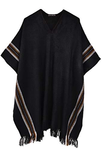 Gamboa Handgjord alpacka herr poncho fleece cowboy mexikansk poncho cape filt, Svart, one size