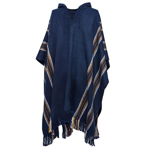 Gamboa Handgjord alpacka ullponcho herr huvtröja fleece stickad mexikansk poncho filt, BLÅ, one size