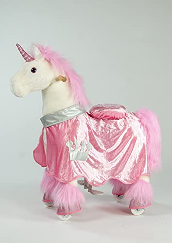 PonyCycle Klassisk Modell U rider på Enhörning med hjul, plysch ridpony med broms och ljud, Storlek 4 för ålder 4-7, gungdjur, ståhäst, Rosa Enhörning Ux402