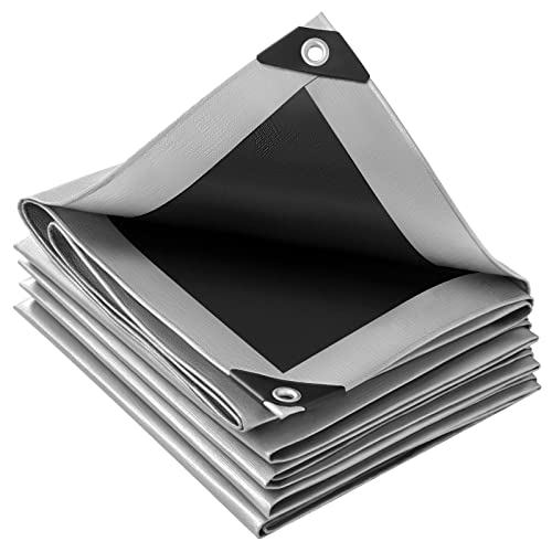 WOLTU vattentät presenning, 3 x 6 m, 280 g/m² presenning i PE-väv, med öljetter, UV-beständig och slitstark lastbilspresenning, mångsidigt skydd för trädgårdsmöbler, pool, studsmatta, bil, grå-svart