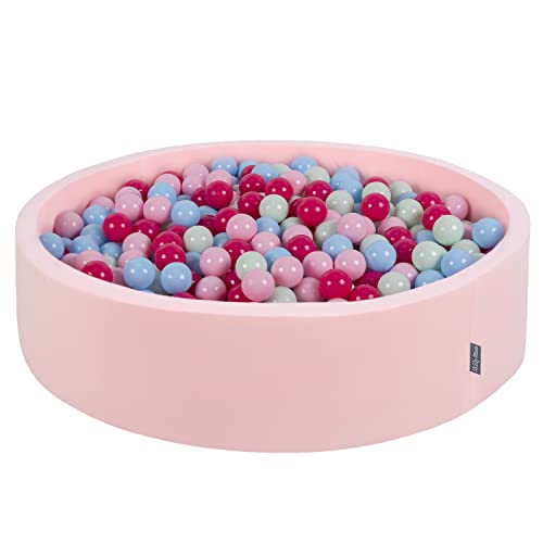 KiddyMoon Mjuk rund rund bollgrop 120 x 30 cm/600 bollar 7 cm/2,75 tum för barn, skumboll pool baby lekbollar barn, tillverkad i EU, rosa: pastell beige/pastellgul/vit/mint/ljusrosa