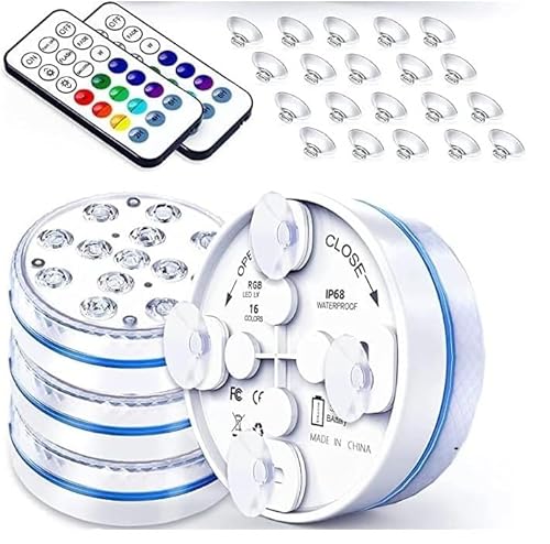 SwiftLand Undervattensljus med fjärrkontroll, RGB multi-färgväxling, vattentätt LED undervattensljus, dammbelysning för vas bas fest, jul, pool, bröllop – 4-pack
