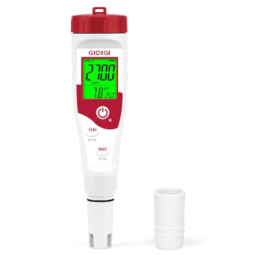 Pond Water TestKit, Digital PH EC ORP SG Salt Temp Meter, 0,05 ph High Accuracy Water Tester for Well Water, Water Hydroponics, Pool, Aquarium