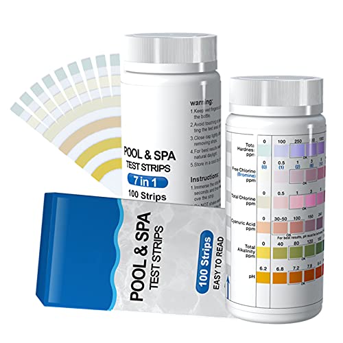7-in-1 Pool Test Strips | Pool Tester for pH, Free Chlorine, Total Hardness, Bromine, Total Chlorine, Cyanuric Acid, Total Calinity | Hot Tub & Spa Test Strips | Pool Water Test Set