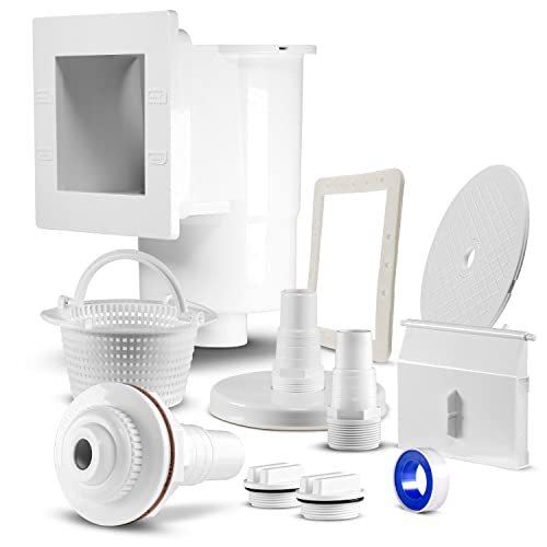 Skimmer poolset i vitt, inbyggd skimmer inklusive inloppsmunstycke och andra tillbehör, komplett set för stålväggpooler, poolrengöringssats, vattenvård