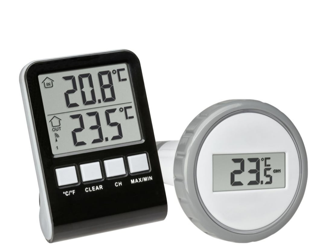 Trådlös pooltermometer, digital, visar även innetemperaturen