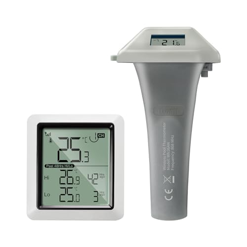 HENGBIRD Pooltermometer svävande, lätt att läsa med inomhustemperatur fuktighet monitor, trådlös digital pooltermometer IP67 vattentät för pooler badkar fiskdamm