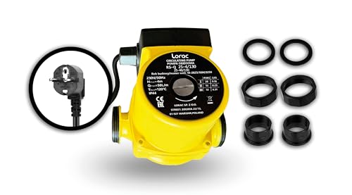 LORAC | Cirkulationspump Värme 220-240 V, RS-Q 25-60/130, Värmepump med 3 effektlägen (46/67/93W), Cirkulationspump Varmvatten, 3-stegs tryck (3/5/6m), Solcirkulationspump, Poolvärmepump, IP44